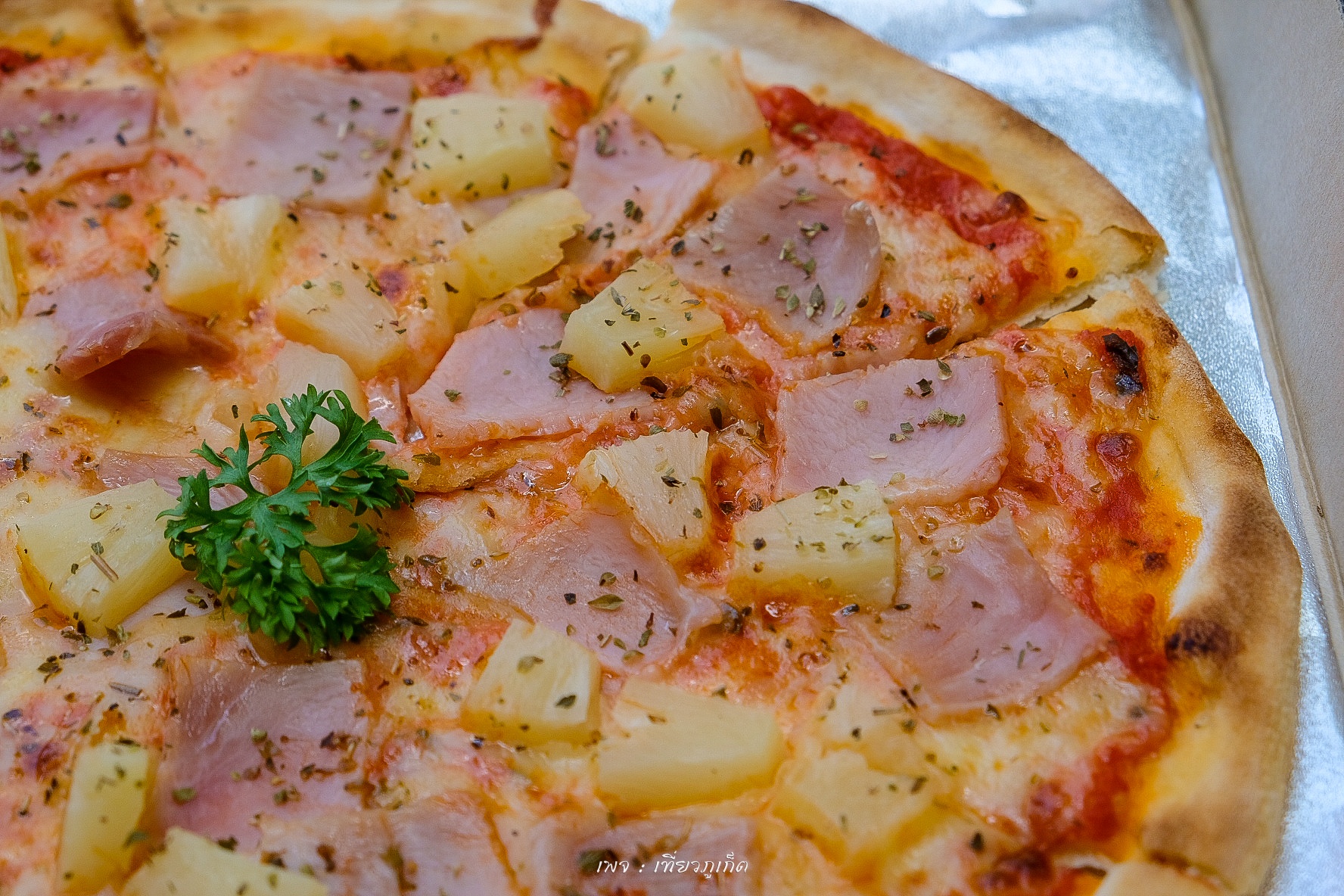 อีกหน้าจะเป็นหน้าฮาวาเอี้ยน หน้าคลาสสิคสำหรับคนที่เลือกหน้าไม่ถูกแบบแอด หน้านี้อร่อยมาก ติดใจไปอีก ด้วยความที่พิซซ่าที่นี่เขาอบด้วยเตาฟืน และแป้งบางกรอบ หอมควันอ่อนๆ คือดีมาก ไม่เลี่ยน กินได้หลายชิ้นเลย